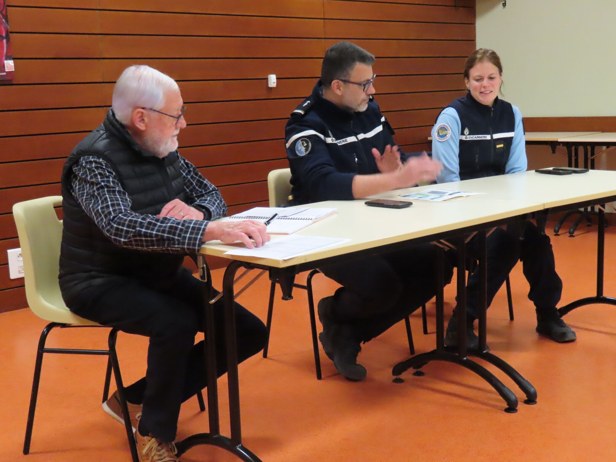 Le major PLANCHON a rappelé qu’ en cas d’urgence, il faut faire le 17 ou le n° de la gendarmerie : 04.74.38.00.35 mais il faut signaler sans prendre de risque et prévenir aussi la mairie pour que les caméras soient visionnées.