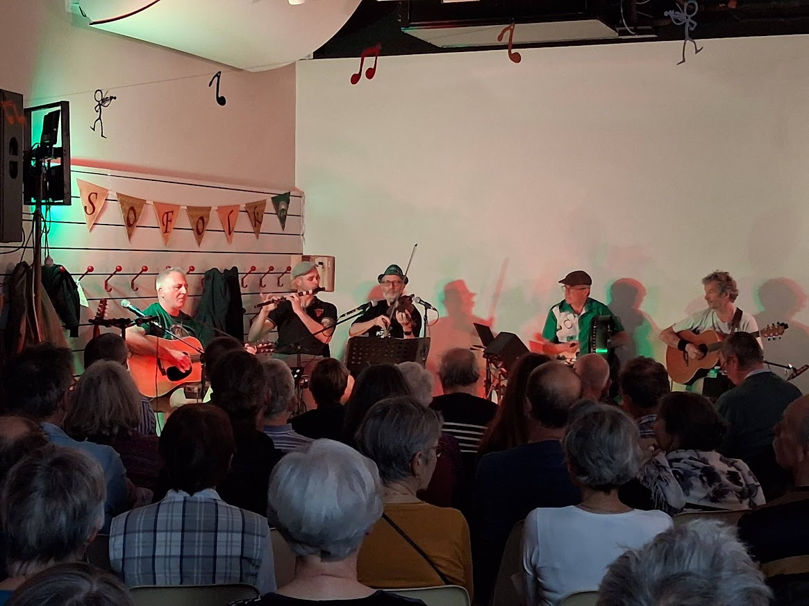 Des compositions originales, des musiciens qui passent d’un instrument à l’autre, qui chantent (très bien) et font chanter leur public…. un moment de bonheur partagé par tous.