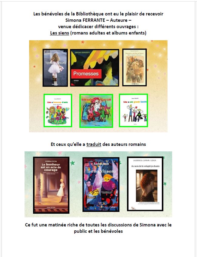 Félicitations à toutes les bénévoles de la bibliothèque pour cette belle organisation et tout le travail effectué en amont pour notre plus grand plaisir !