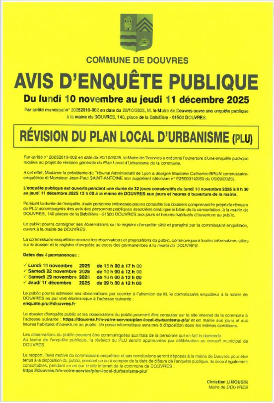 Jeudi 11 décembre 2025 : révision du PLU, enquête publique, dernière permanence