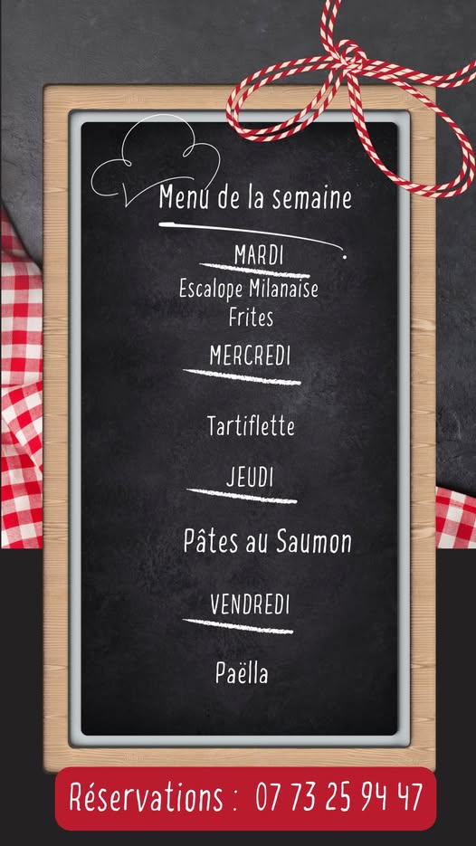 Du mardi 04 au vendredi 07 novembre 2025 : menus au bar Tabac LA Babillière