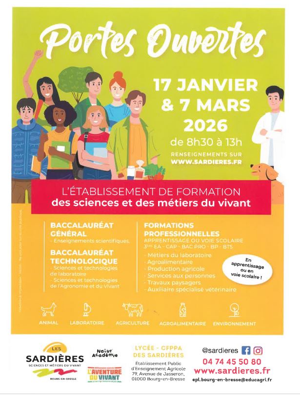 Samedis 17 janvier et 7 mars 2026 : portes ouvertes « Les Sardières »