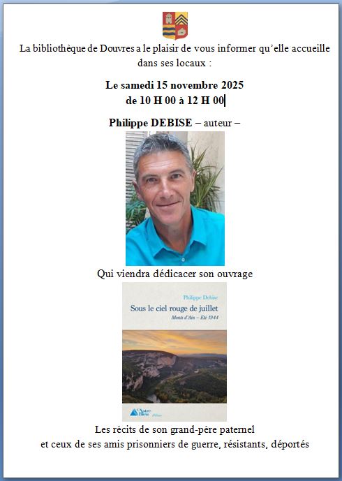 Samedi 15 Novembre 2025 : Philippe DEBISE – auteur – à la bibliothèque