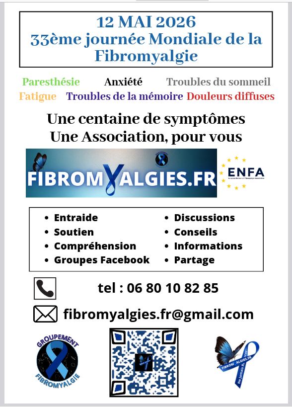 L’Association Fibromyalgies.fr, fondée en 2009 et reconnue d’intérêt général, a pour objectif d’apporter conseils et soutien aux personnes touchées par la fibromyalgie, de mener des campagnes de sensibilisation et de lutter pour une meilleure reconnaissance institutionnelle et le développement des programmes de recherche sur cette maladie.