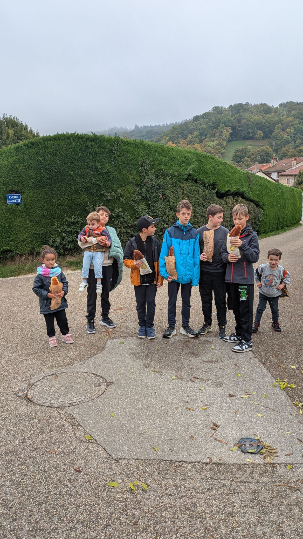 On les entend arriver…. les enfants de l’école. Ils rient, ils sont heureux d’arpenter les chemins du village, avec leurs parents bien sûr, pour proposer les bonnes brioches du Sou des Ecoles. Les plus petits sont présents aussi, le plus jeune a 1 mois et 5 jours…Dans quelques temps, il pourra dire : « Les brioches du Sou des Ecoles, J’y étais ! ».