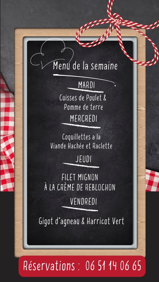 Du mardi 16 au vendredi 19 décembre 2025 : menus au bar Tabac LA Babillière