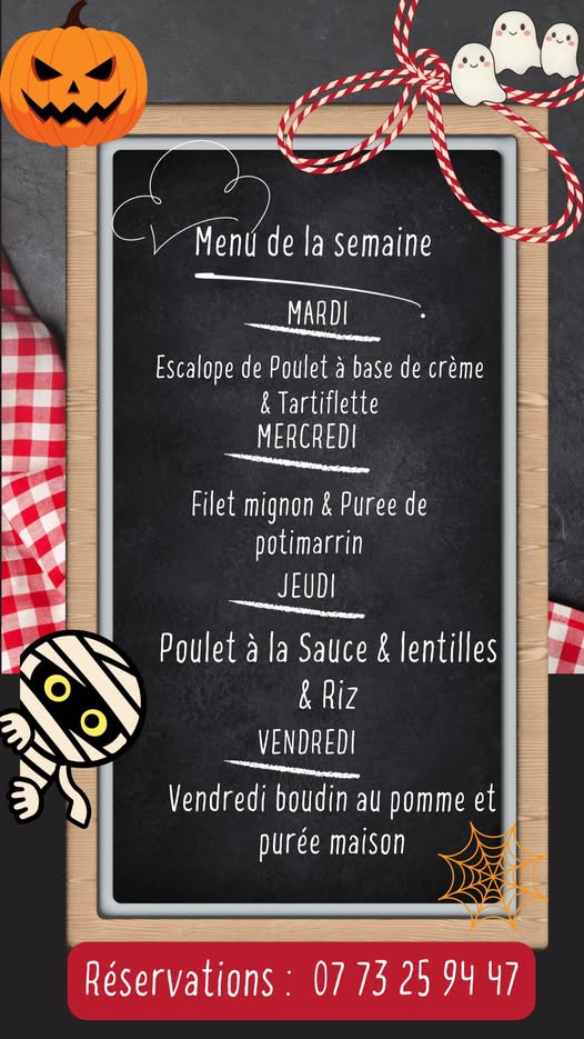 Du mardi 28 au vendredi 31 octobre 2025 : menus au bar Tabac LA Babillière