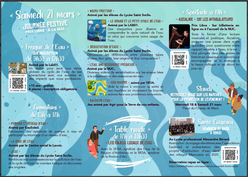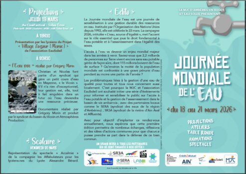 du mercredi 18 au samedi 21 mars 2026 : Journée Mondiale de l’Eau.