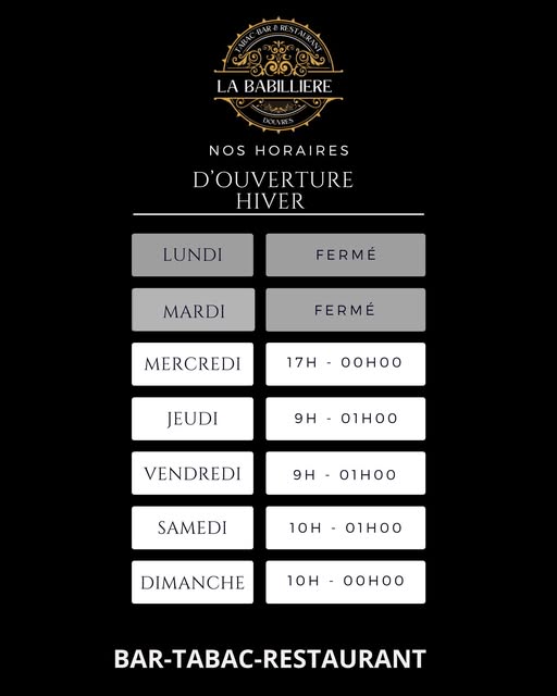 À partir du dimanche 1er février, votre bar tabac restaurant La Babillière adopte ses nouveaux horaires d’ouverture