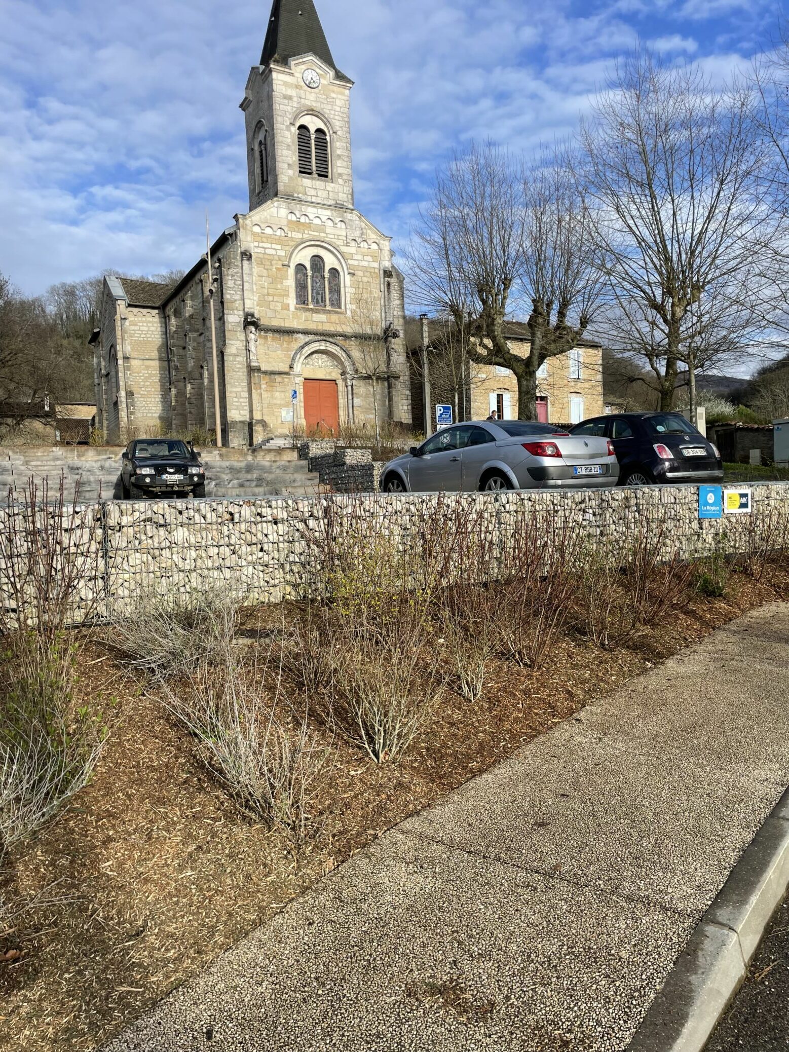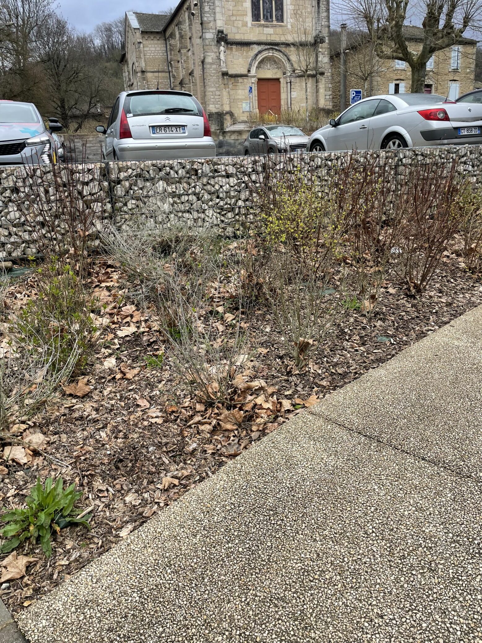 Après un bon nettoyage des ronces et des feuilles sur les plates-bandes de l’église, François et Damien ont recouvert ces massifs de copeaux de broyage que James Coutier a gracieusement apporté, 3 tonnes au total. Merci James.