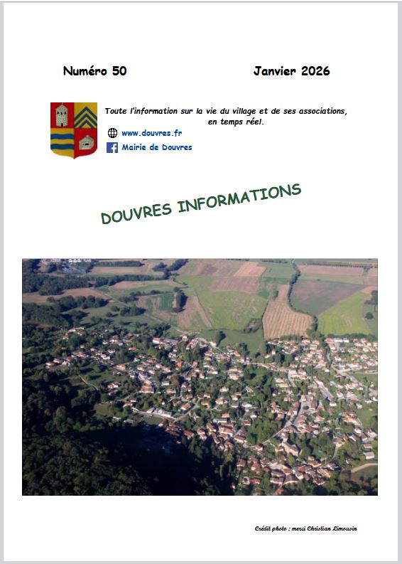 Vous pouvez aussi le voir sur la page Facebook Mairie de Douvres et sur le site à  «  le Conseil municipal -> bulletin municipal  » ainsi que « Le mot du Maire » et le calendrier des fêtes dans « Vie publique ».