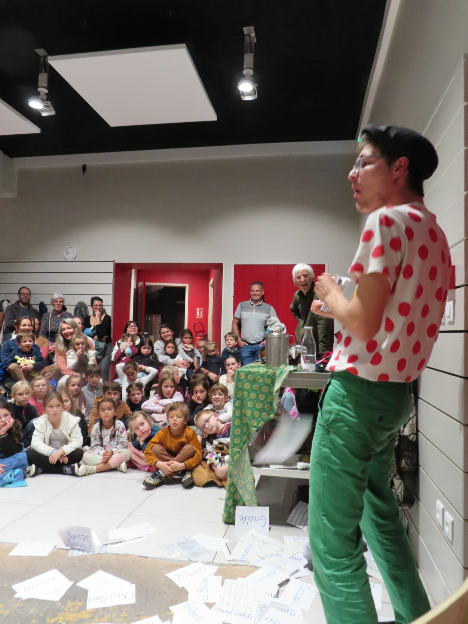 Il jongle (même avec 3 violons et des gants de ski), il plaisante, il gère les enfants devant lui et fait participer le public.