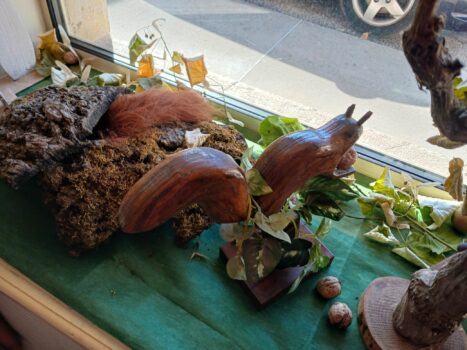 Il y a des fruits, des légumes, des champignons, des fleurs, des noisettes…pour régaler l’écureuil et la fouine !