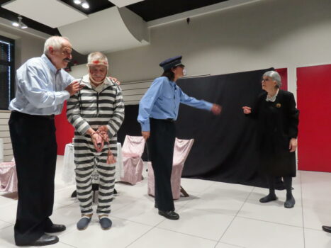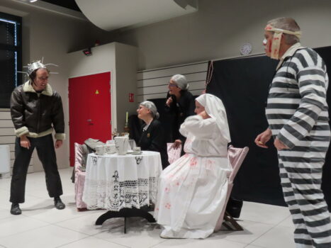 Hélène Gaud, de la compagnie ZAZIE 7, a adapté et mis en scène « Le vin de prunelle des vieilles dentelles » interprété avec brio par Madey, Christine, Kenny, Sylvie, Pierre, Virgile, Carine et Philippe.