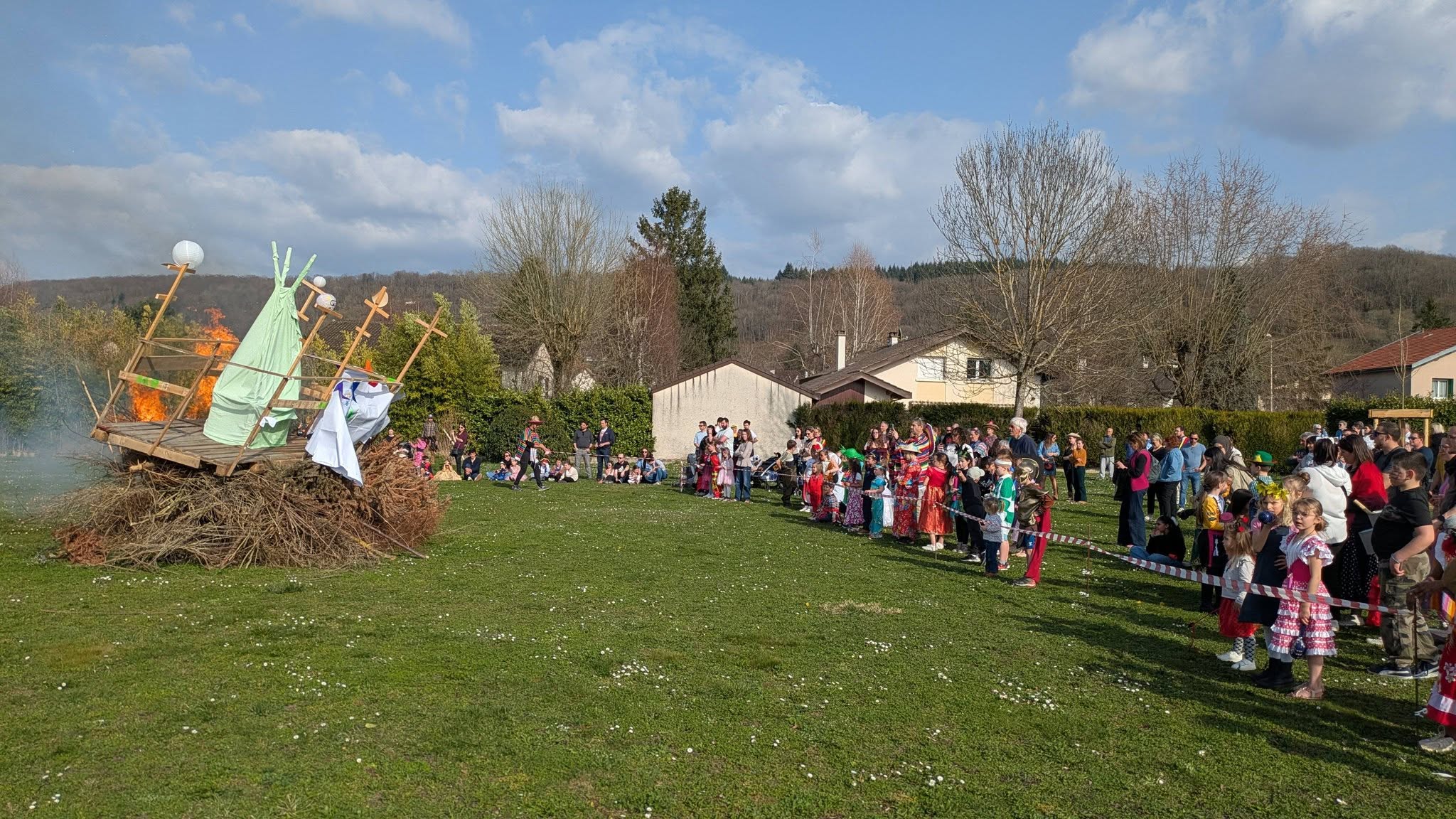 Le brandon bien sec s’est embrasé rapidement et M. Carnaval, une fois de plus, a subit l’assaut des flammes sous l’œil vigilant des pompiers de notre CPINI.